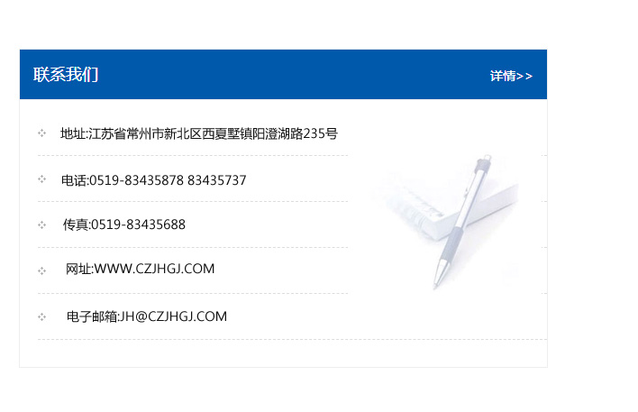 傳真:0519-83435688    郵編:213135    網址:WWW.czjhgj_com.tdbengfa.com    電子郵箱:JH@czjhgj_com.tdbengfa.com